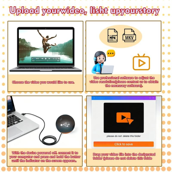 2.7" Crystal Ball Digital Photo Album Electronic ball– DIY Video Display Sphere – Customizable Gift with Electronic Screen – Great for Couples, Pets, Memories