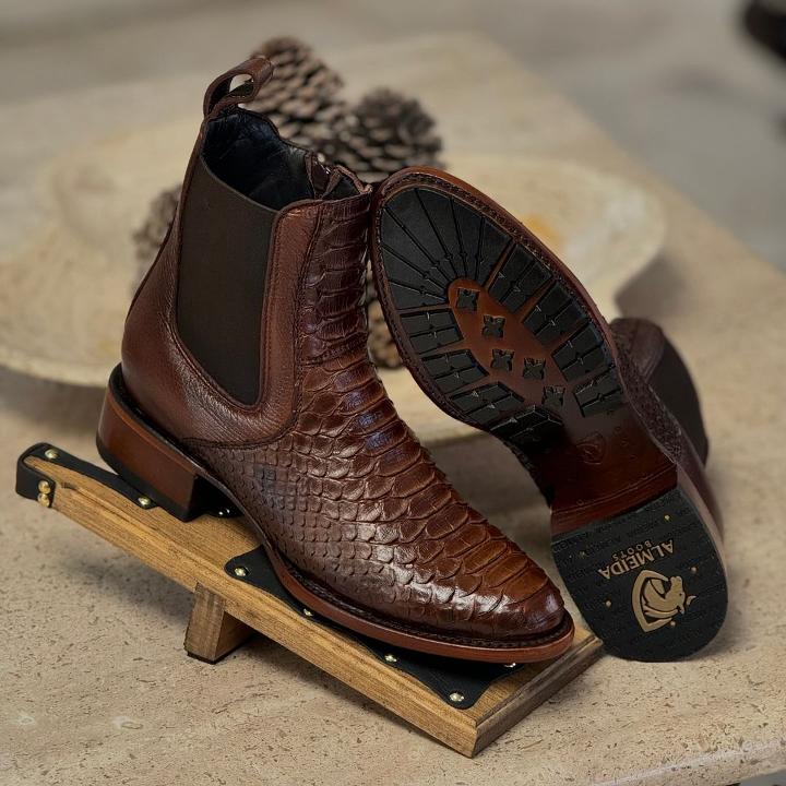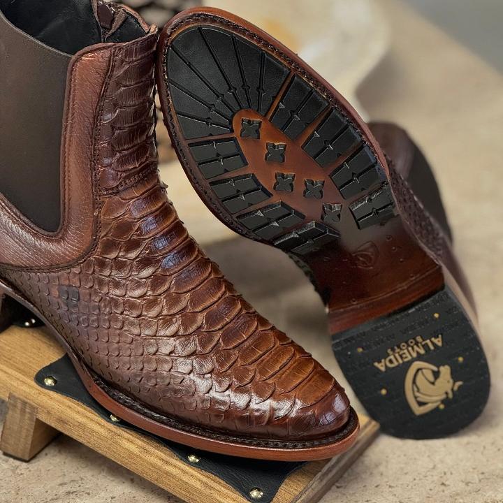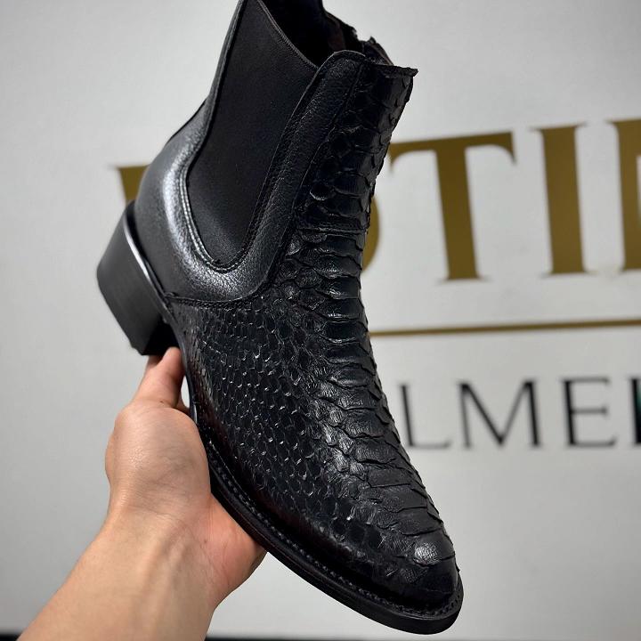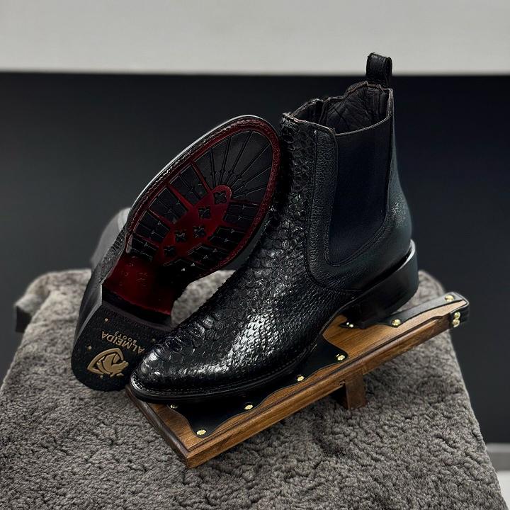 Hand-stitched vintage python leather boots
