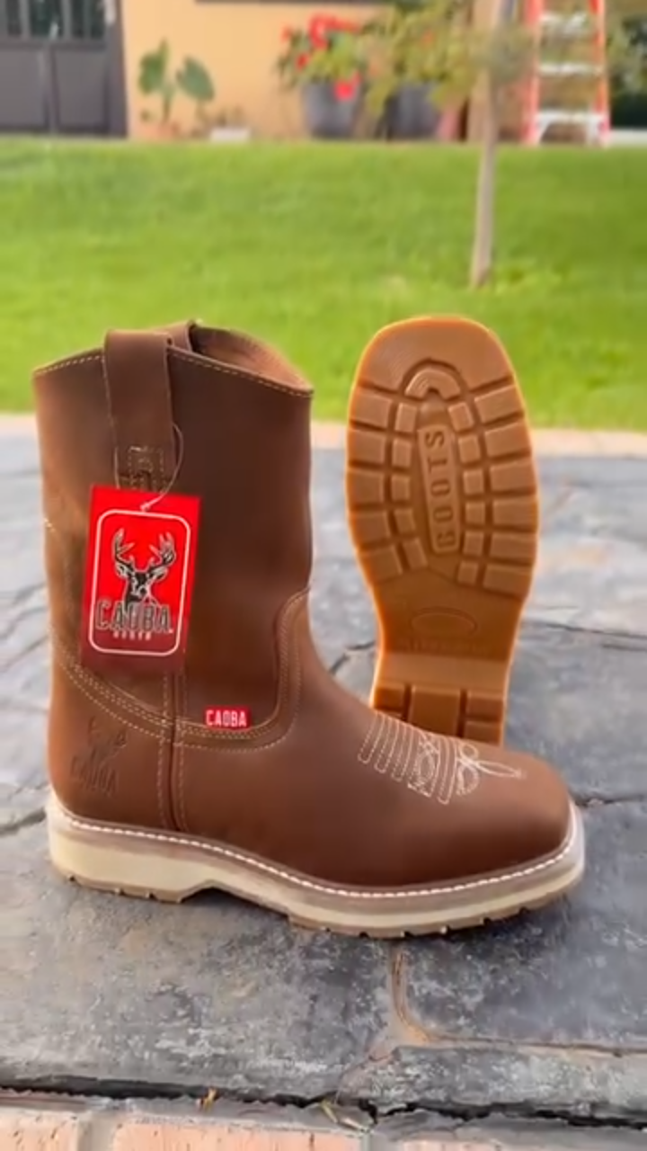 Men's Genuine Leather Flat-Sole Denim Work Boots