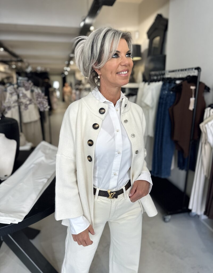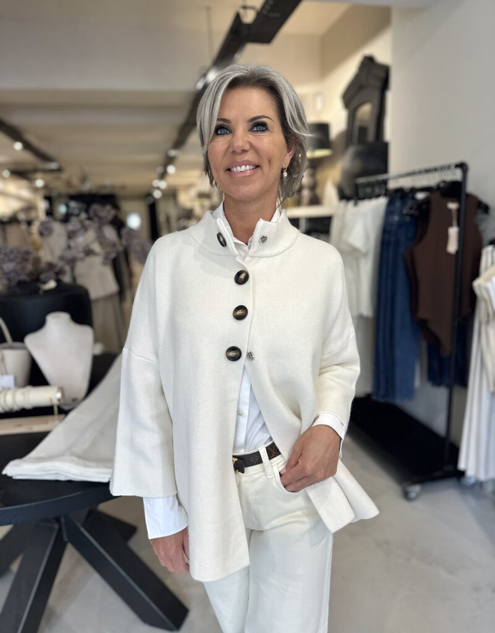 Designed in a crisp, lightweight fabric, this maxi-length piece flows effortlessly while maintaining a clean, tailored look. Finished with a full button-down front, it’s perfect worn solo or with the matching pants.